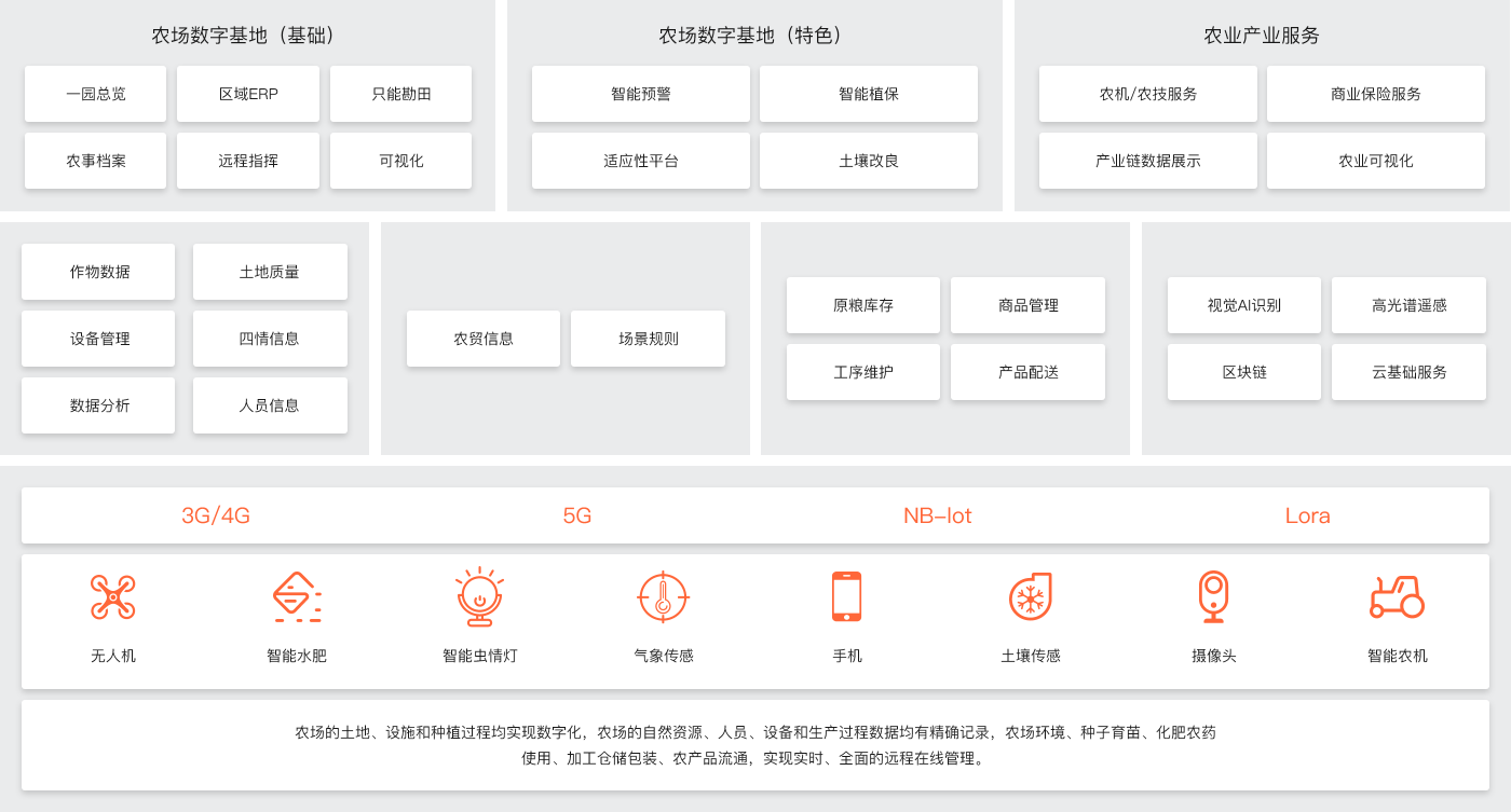在种植、养殖生产作业环节,逐渐摆脱人力依赖,构建集环境生理监控、作物模型分析和精准调节为一体的农业生产自动化系统和平台,提高管理效能。